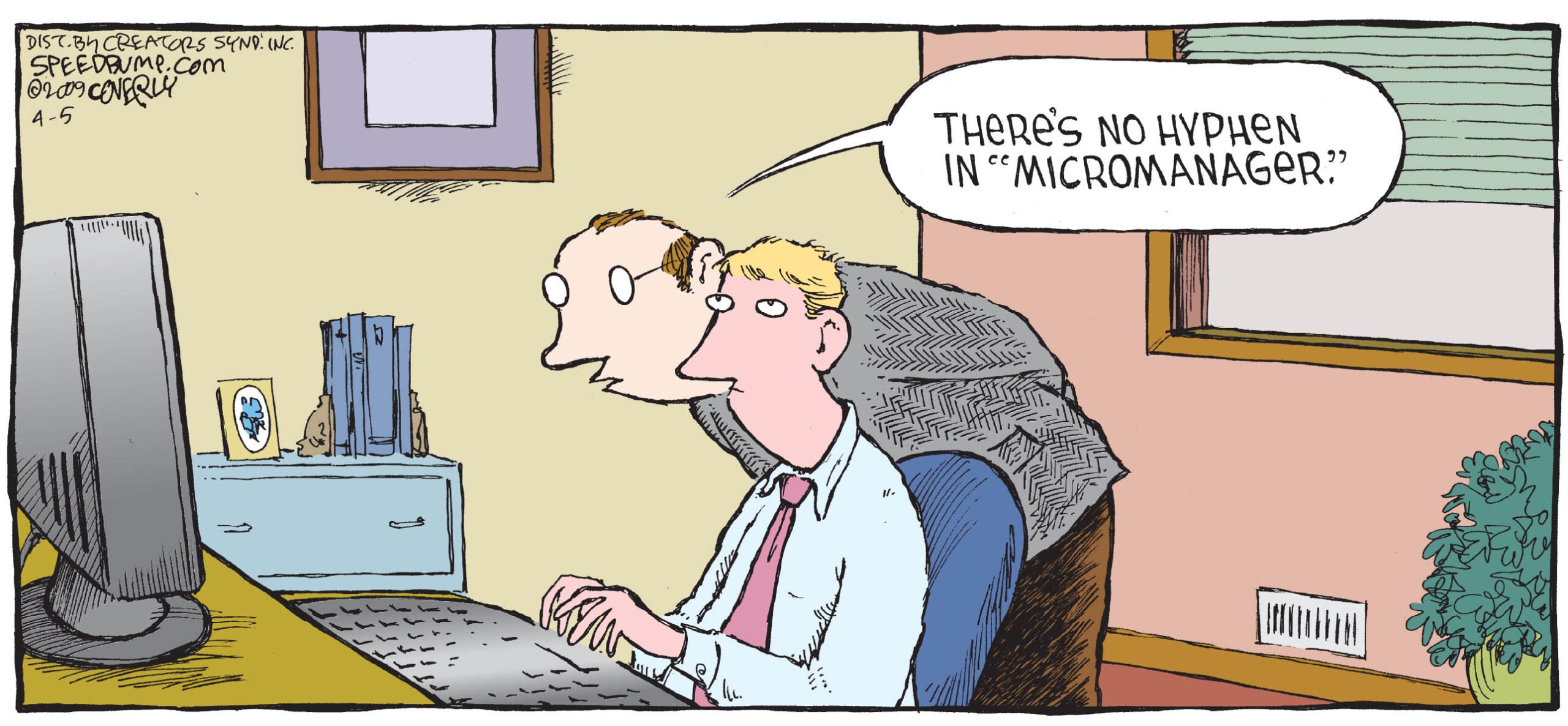 If you Google “Micromanager,” you will find millions of hits. You’ll find comics that poke fun of micromanagement behavior: